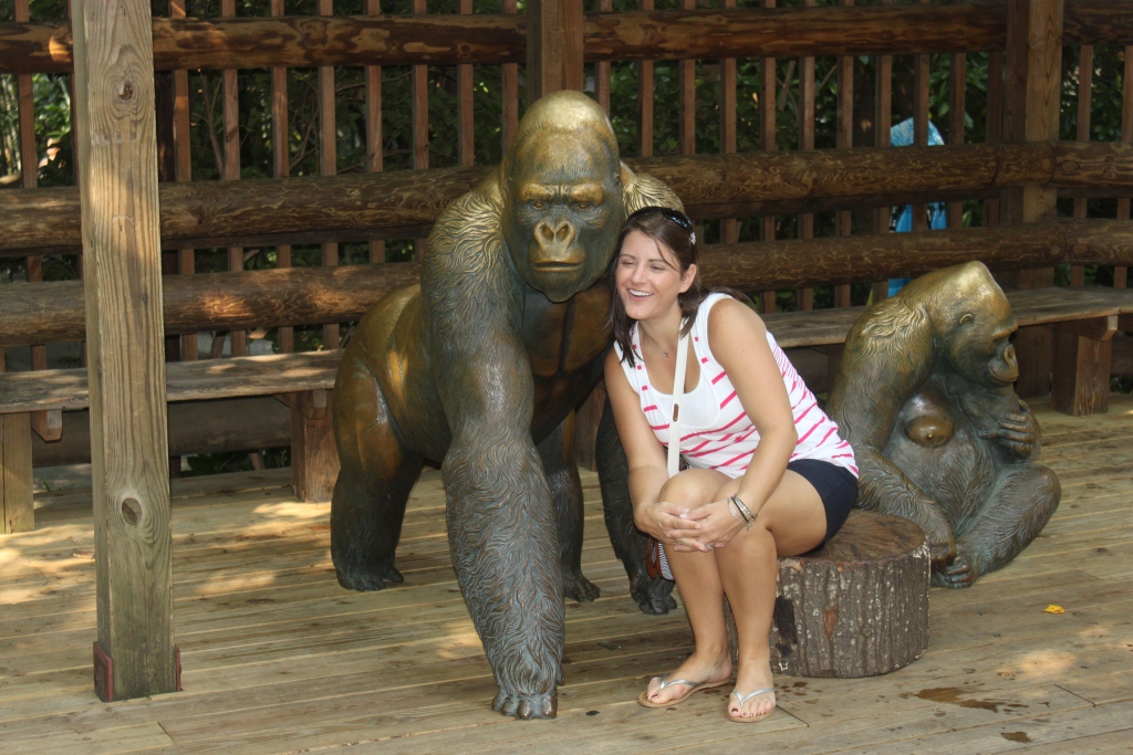 That would be me trying to convince B that the big monkey statue wasn't as scary as she seemed to think it was. She totally wasn't buying it, though.